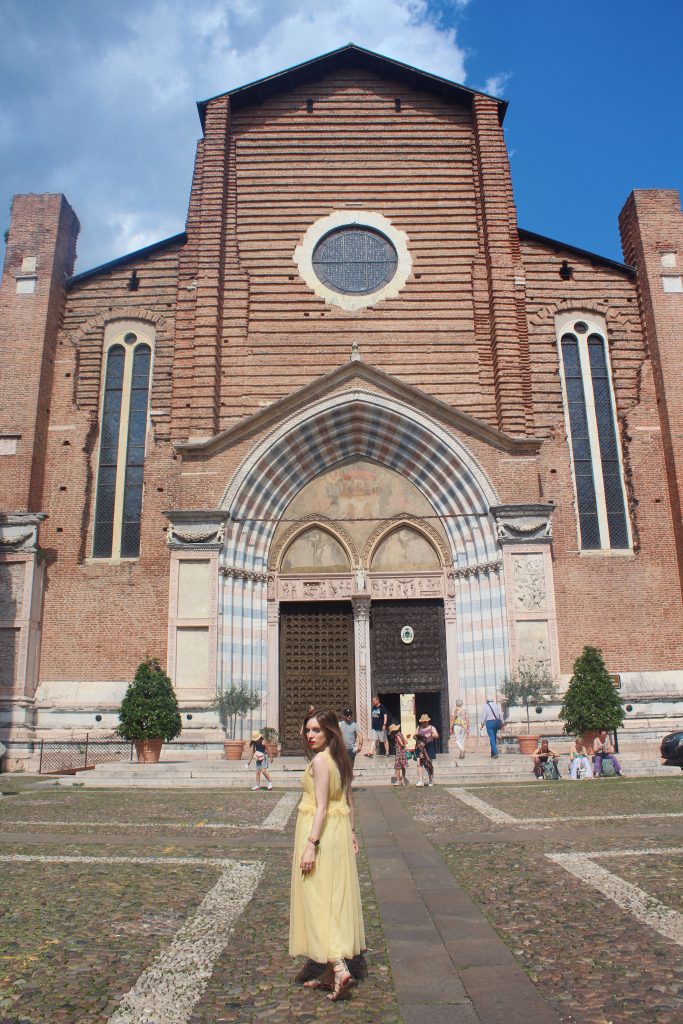 Un templo de estilo gótico situado muy cerca del río Adige . Su construcción empezó en 1290 pero nunca se terminó . La fachada que está dividida en tres secciones, quedó incompleta y por eso está revestida de piedra local.