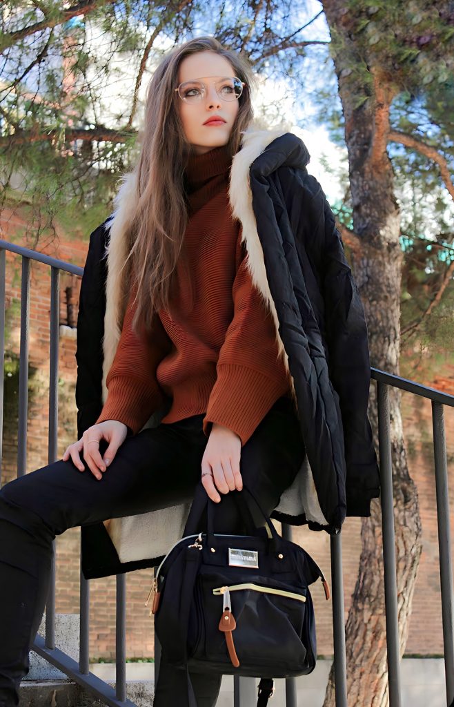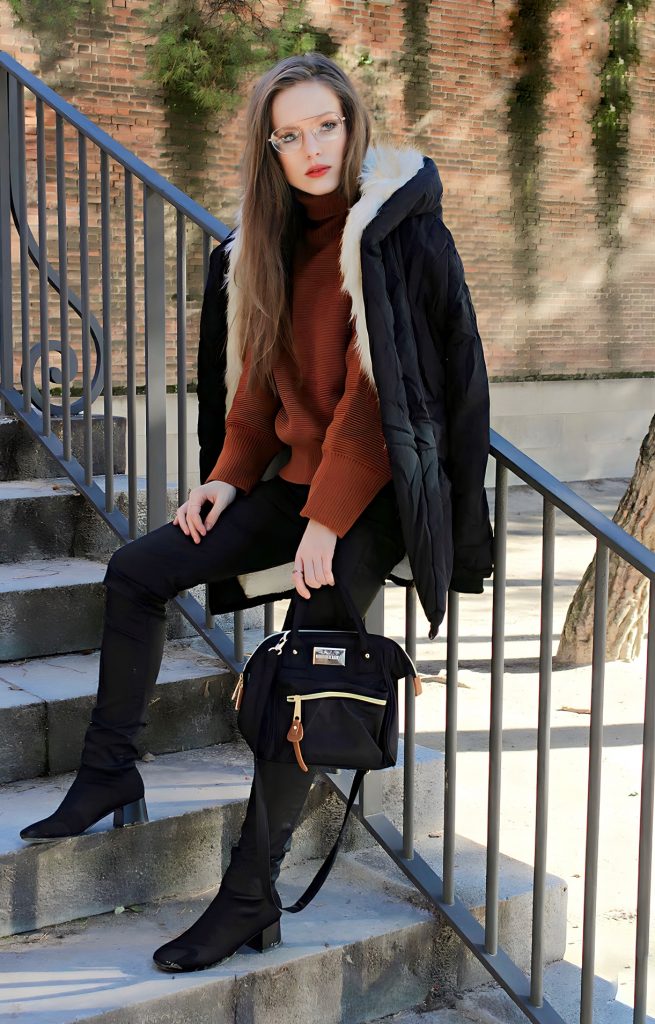 En esta ocasión, lo he conjuntado con un jersey de cuello vuelto en color caldera. Creo que es uno de los colores que más favorecedores sientan. Además, siempre tiene cabida en la moda del momento temporada tras temporada.