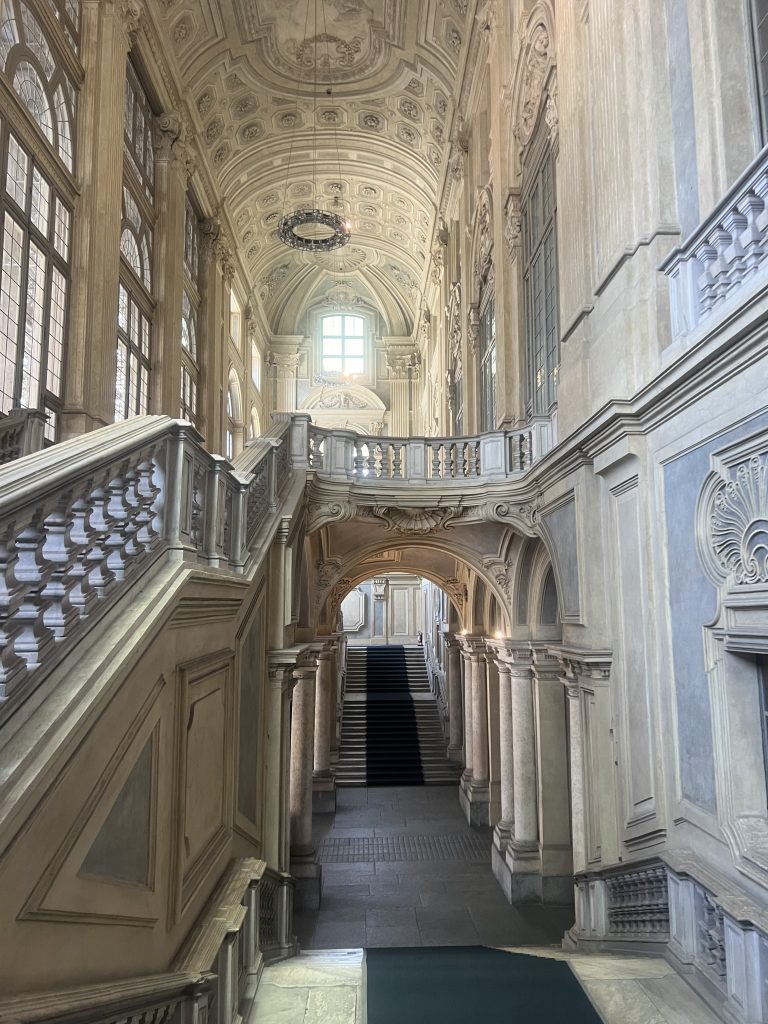 Se encuentra en la Plaza Castello, al ladito del Palacio Real y fue originariamente una puerta de la ciudad que terminó por transformarse en el castillo de los príncipes de Acaja.