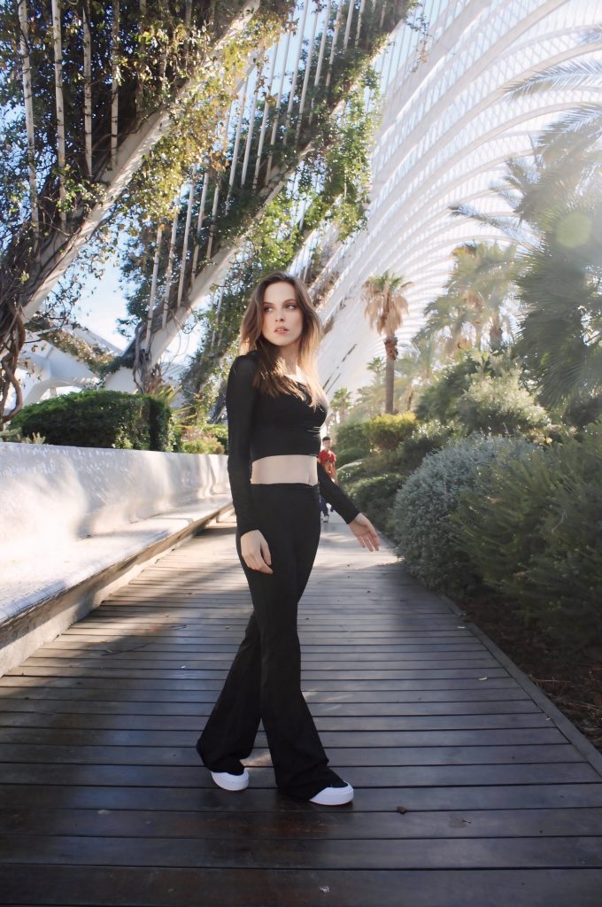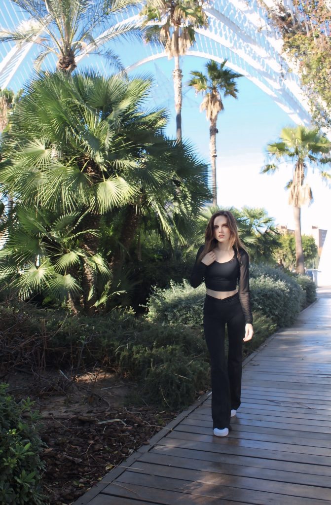 El negro, además, siempre es un acierto: atemporal, favorecedor y fácil de combinar. Con unas zapatillas blancas y accesorios minimalistas, este conjunto se convierte en un look urbano limpio, moderno y muy actual.