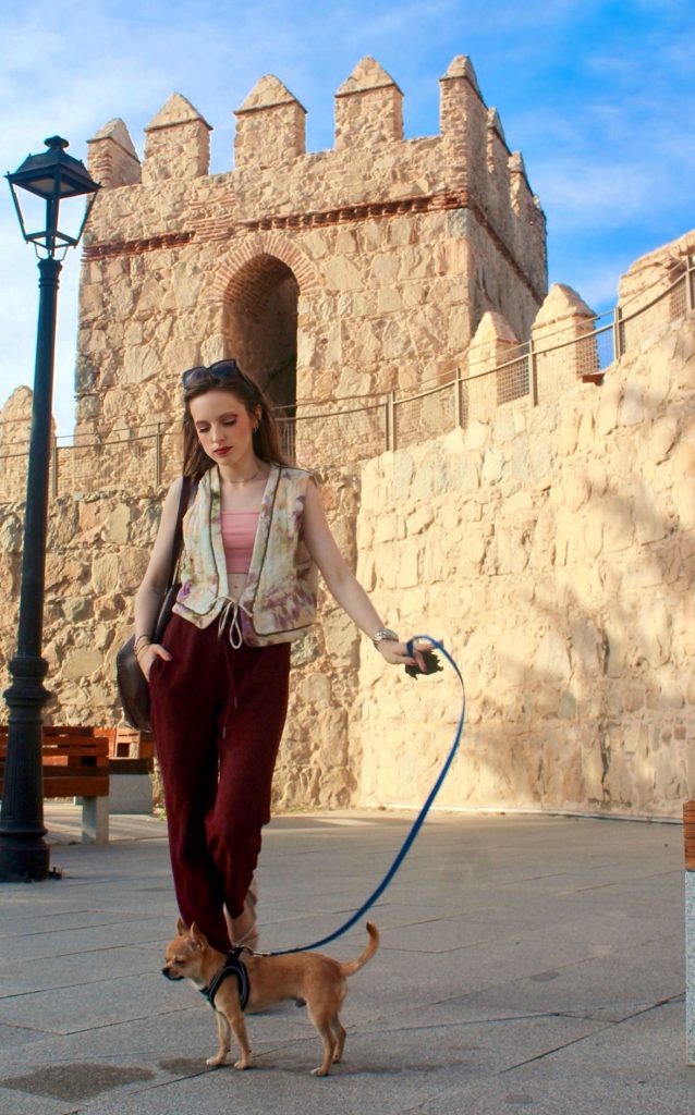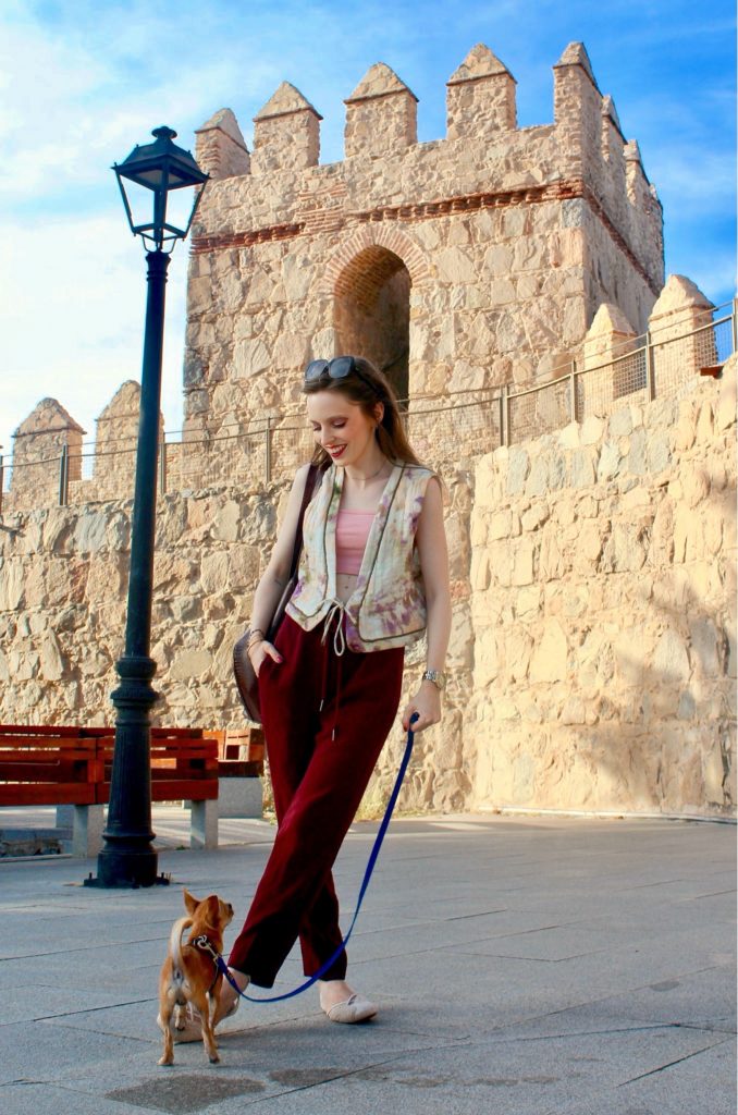 El otoño se abre paso entre las piedras antiguas y el aire cálido de la tarde. En esta ocasión, el escenario fue una muralla de Ávila con la maravillosa compañía de mi perro Nilo . En definitiva, el marco perfecto para un look que combina comodidad, color y un toque bohemio.