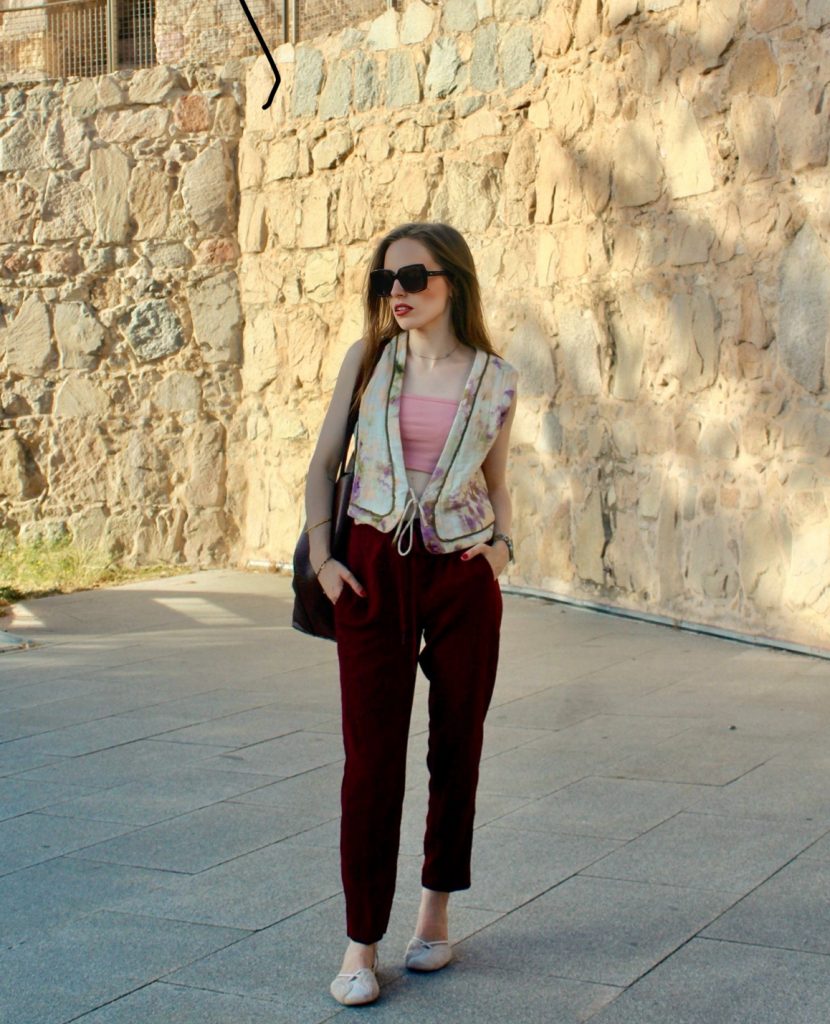 El toque más elegante lo ponen los pantalones burdeos, fluidos y de caída ligera, que estilizan sin renunciar al confort. Como calzado, unas alpargatas en tono neutro que destacan por su versatilidad en todos los sentidos. Es increíble lo mucho que las he usado este verano y lo cómodas que son.