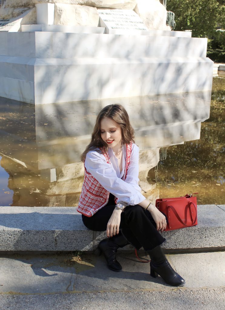 Por último, un bolso Valentino en rojo que hace un guiño a los detalles del chaleco. Adoro esta marca en cuestión de accesorios pues creo que siempre recuperan clásicos de antes junto con piezas del momento