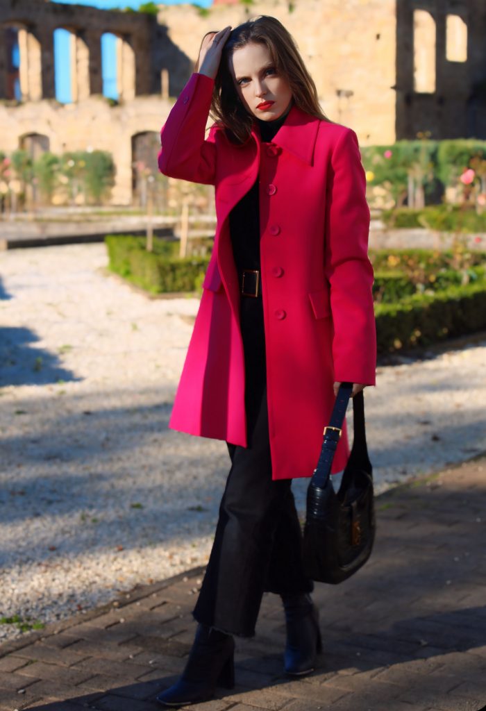 En cuanto a la nota de color de la que os hablaba al inicio, la aporta indiscutiblemente el abrigo . Confieso que su estética lady , romántica y femenina, me conquistó . Creo que consigue captar toda nuestra atención a la vez que diferenciar nuestro look.