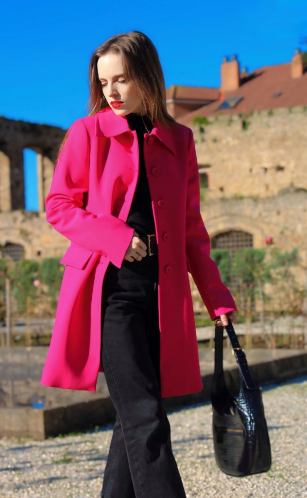 Los looks monocromáticos siempre son un acierto , una apuesta segura sobre la que no cabe ni un `»pero». Si a esto, le añadimos una prenda de color que revista todo el outfit conseguiremos sumar un toque de luz y un punto extra a todo el conjunto .