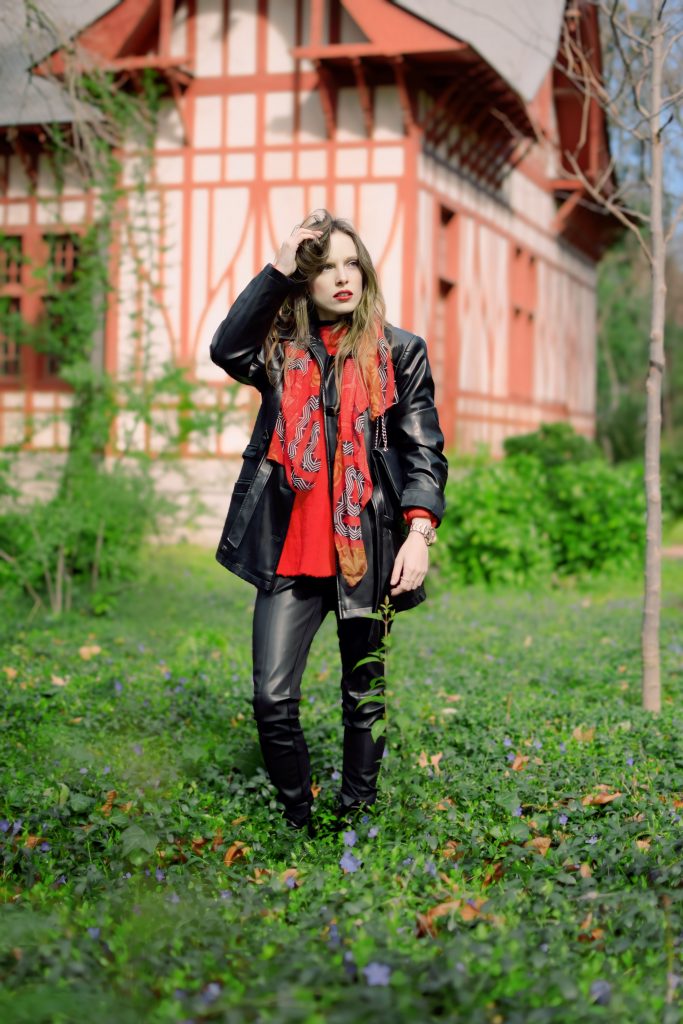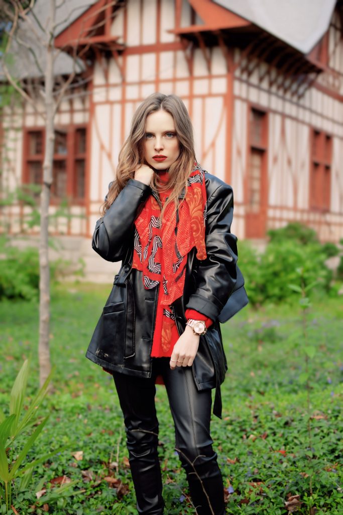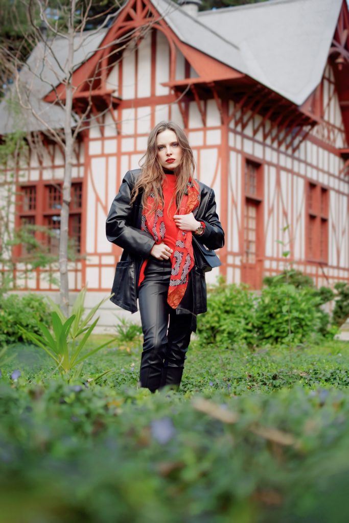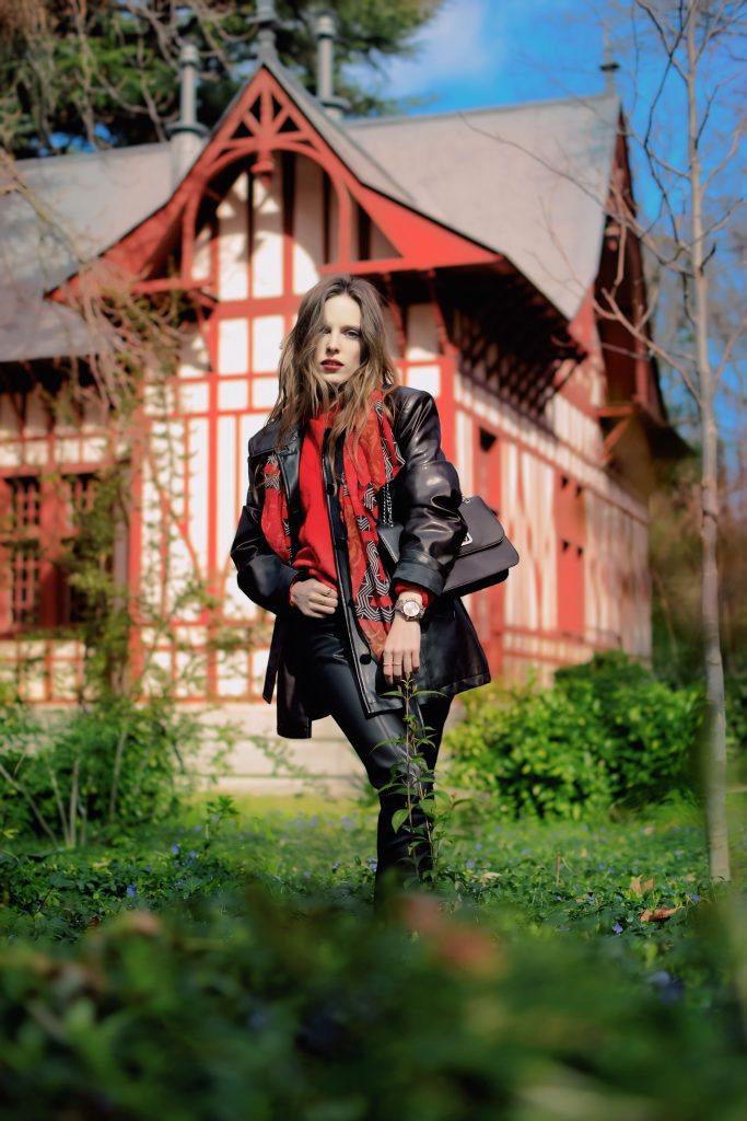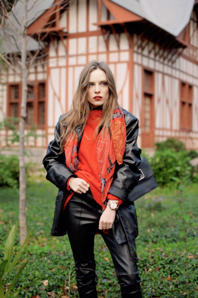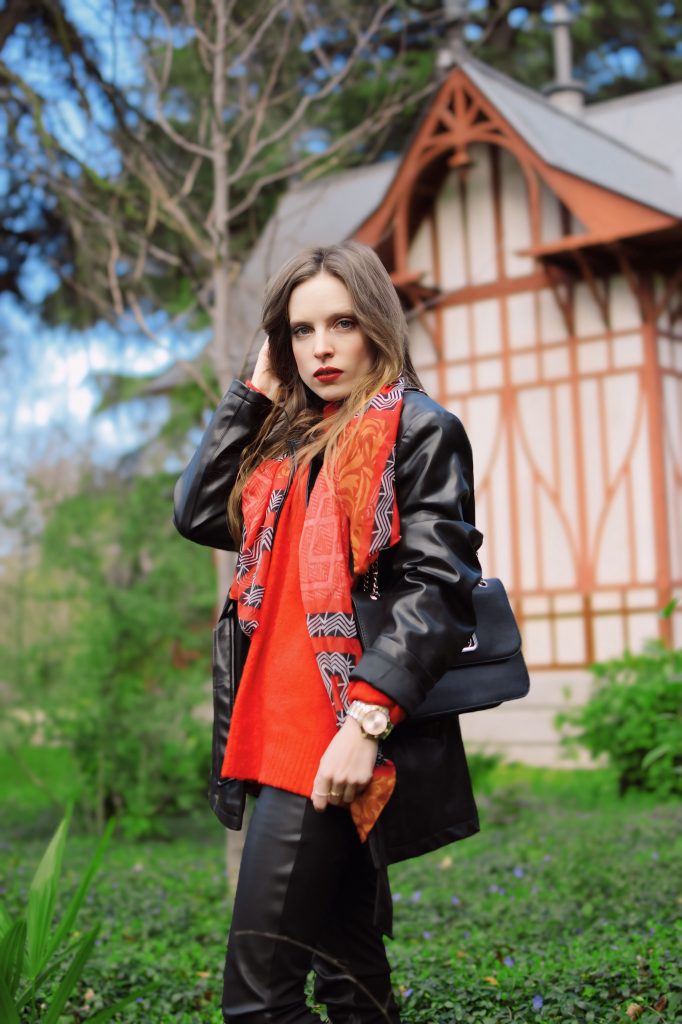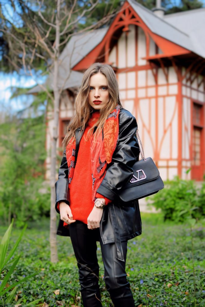 El pantalón pitillo de polipiel y la levita hacen el fondo neutro . Un fondo compuesto por prendas tan versátiles como atemporales. Dos prendas que son un fondo de armario indiscutible al que recurriremos en multitud de ocasiones porque se adaptan a todo, favorecen y nunca pasan de moda. Al contrario, las vemos haciéndose un hueco tanto en el streetstyle como en las pasarelas.