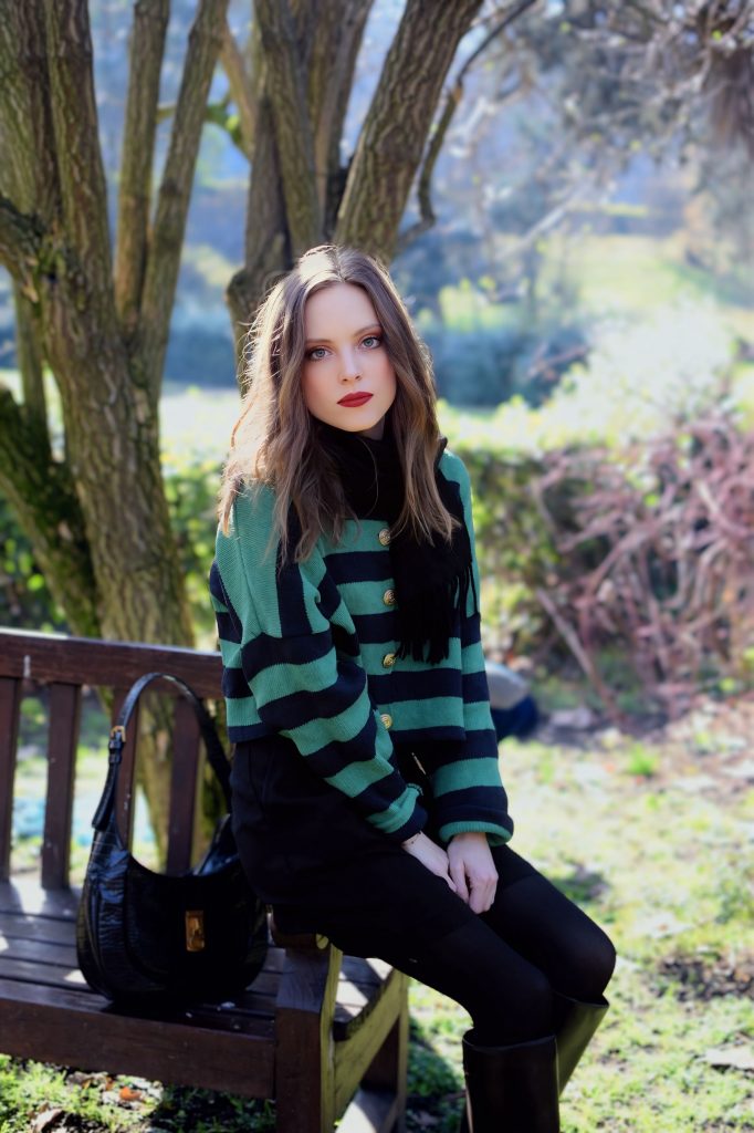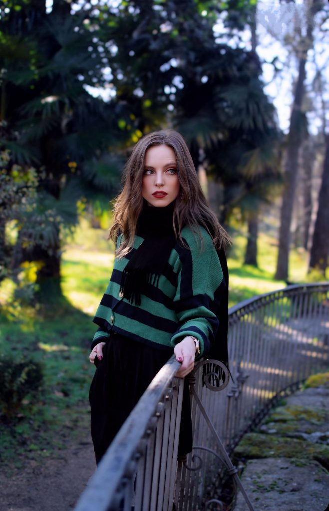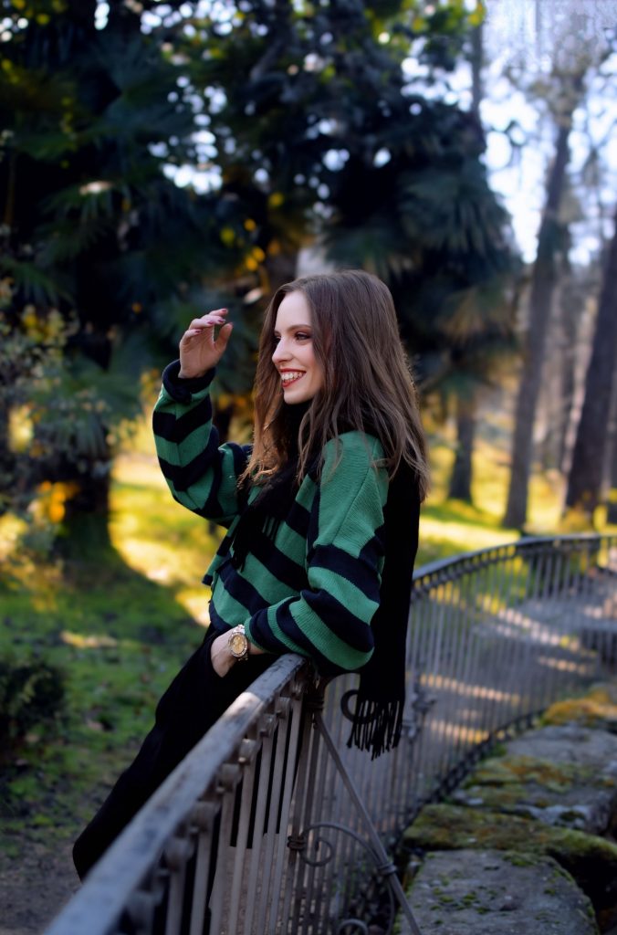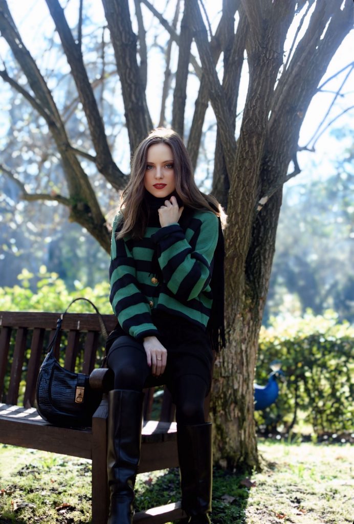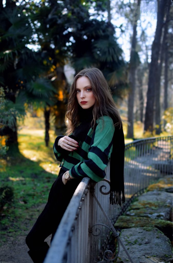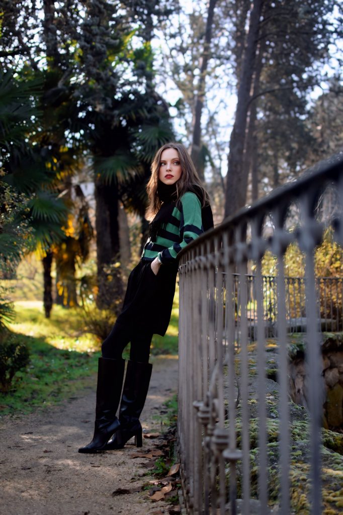 La luz del look la lleva el color verde que sobre la sobriedad del negro adquiere un extra de fuerza y favorece especialmente a nuestro rostro. Creo que es un look actual que consigue potenciar la silueta , que lleva consigo elementos que encajan muy bien los unos con los otros y que nos asegura que podremos volver a ellos en el tiempo pues son un ejemplo claro de que lo que funcionó en el pasado, funciona en el presente y seguirá siendo así en el futuro. Un ejemplo de moda en toda regla.
