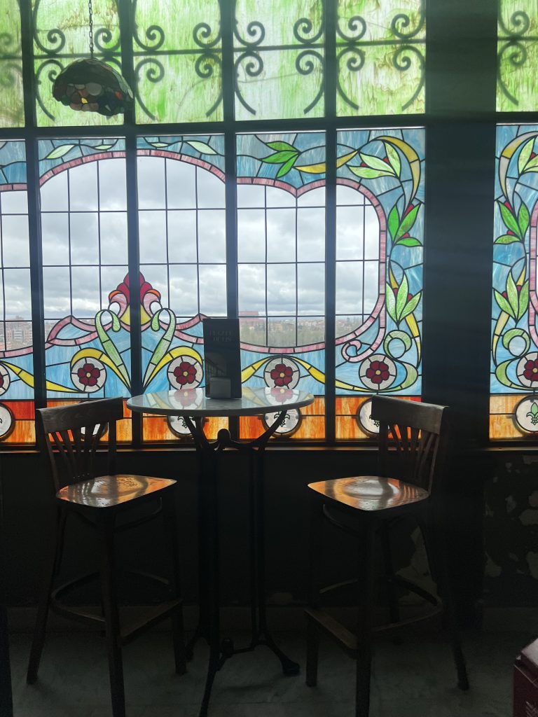 Es imprescindible contemplar la impresionante vidriera que cubre la galería superior y os animo también a hacer una parada en su bonita cafetería