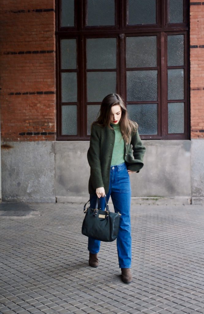 - Bolso en tono verde oscuro